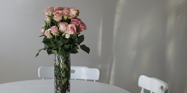 Ми рекомендуємо наливати води на третину довжини троянди. Коли знову наповните вазу свіжою водою, ви можете обрізати 1 см стебел. Використовуючи гострі, чисті ножиці або лезо, зріжте стебла під кутом. Вища поверхня стебла, що контактує з водою, гарантує, що ваші троянди будуть достатньо зволожені.