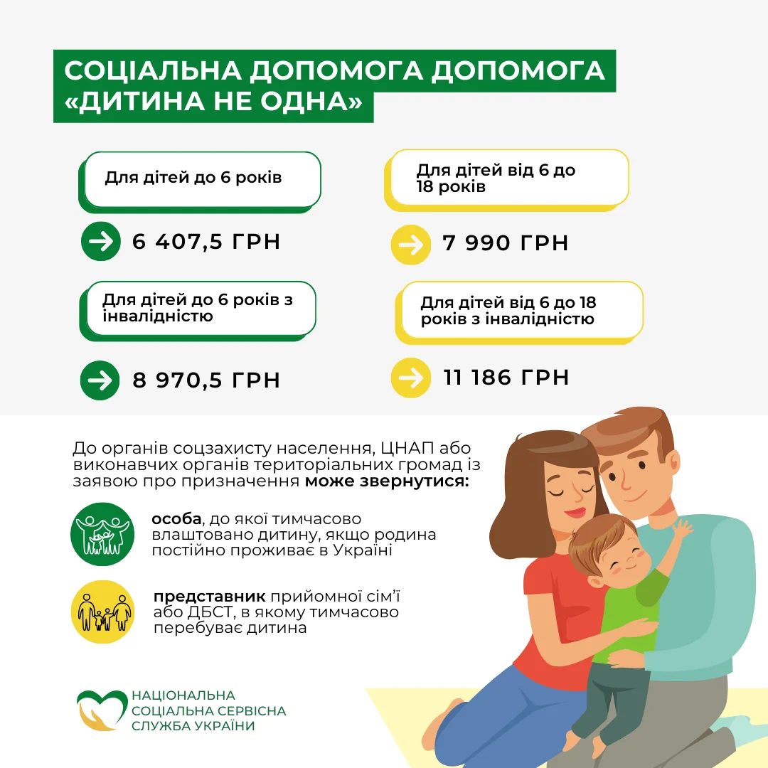 Зверніться до органу соціального захисту населення чи ЦНАП за місцем проживання. Необхідні документи: паспорт одного з батьків чи документ, який посвідчує особу …