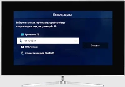 На ТВ перейдіть у «Налаштування», далі «Звук». Оберіть «Виведення звуку» та почніть пошук доступних Bluetooth-пристроїв. Знайдіть свої аудіо-пристрої з отриманого списку і підтвердіть сполучення. Готово.
