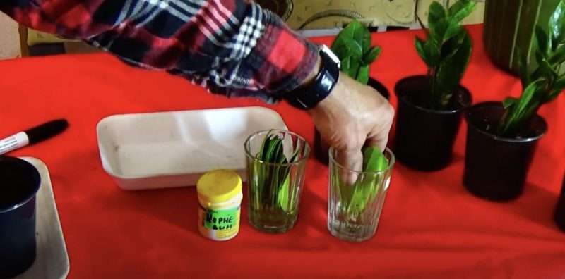 Для цього треба зрізати невелику гілочку у дорослої рослини, а потім поставити її у воду. Не панікуйте, бульби та коріння наростають на гілці заміокулькаса дуже довго. Процес може зайняти близько пів року. І це нормально.