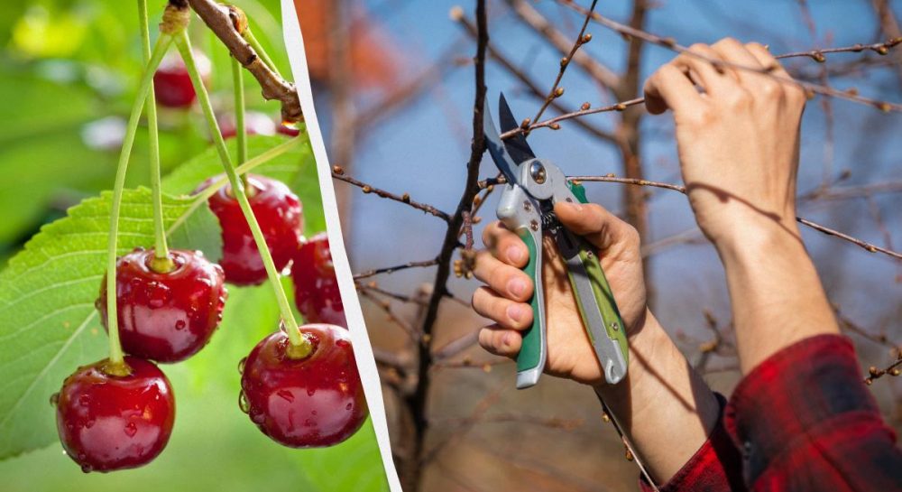 обрізка вишні весною; Щорічно проводять санітарну обрізку: видаляють всі сухі і пошкоджені гілки. Завадять рослині і ті пагони, що загущают крону і знижують її провітрюваність.