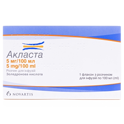 Акласта пригнічує опосередковану остеокластами резорбцію кісток. Золедроновая кислота має високу спорідненість до мінералізованої кісткової тканини та надає …