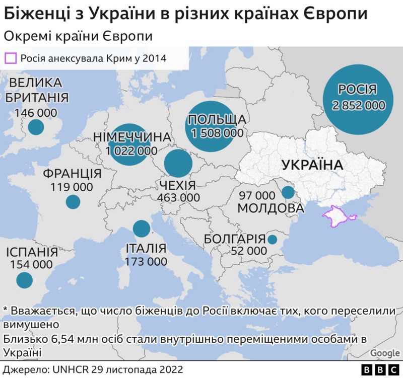 Скільки українських біженців у ЄС?