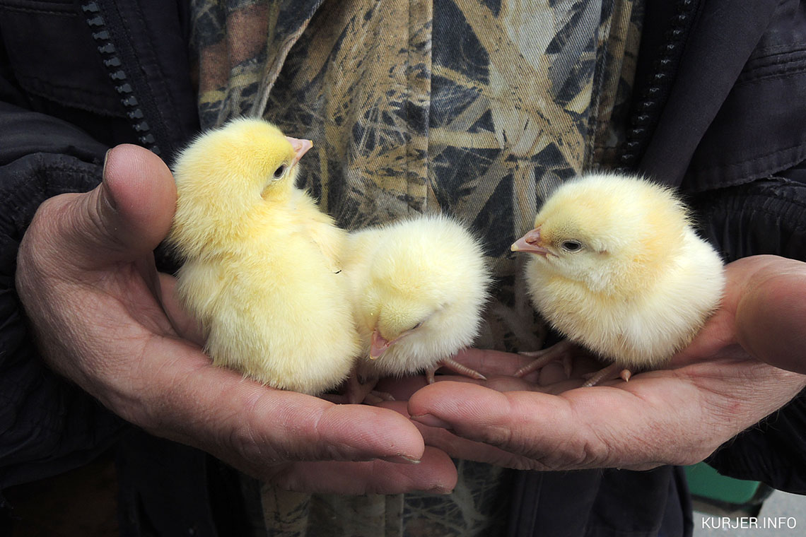 У перші десять днів курчат годують через кожні дві години. У цей період кращою їжею для них будуть дрібно нарубані круто зварені яйця, розсипчастий сир, змішані з манною або кукурудзяною крупою. На десять курчат дають одне яйце або 50 г сиру, змішані з 50 г крупи.