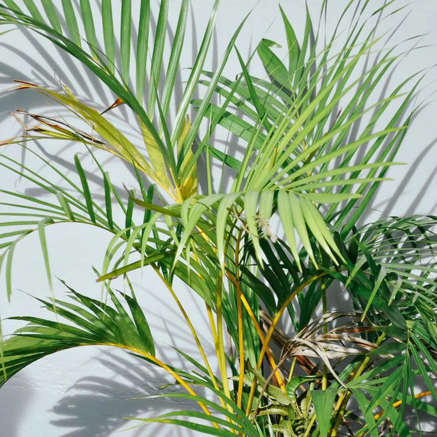 Ось дві причини чому у пальми Арека сохнуть листки: перезволоження і переохолодження коренів. За недостатнього поливу кущ «розвалюється». Пагони нахиляються врізнобіч, при цьому у пальми Арека передчасно жовтіють нижні листки.