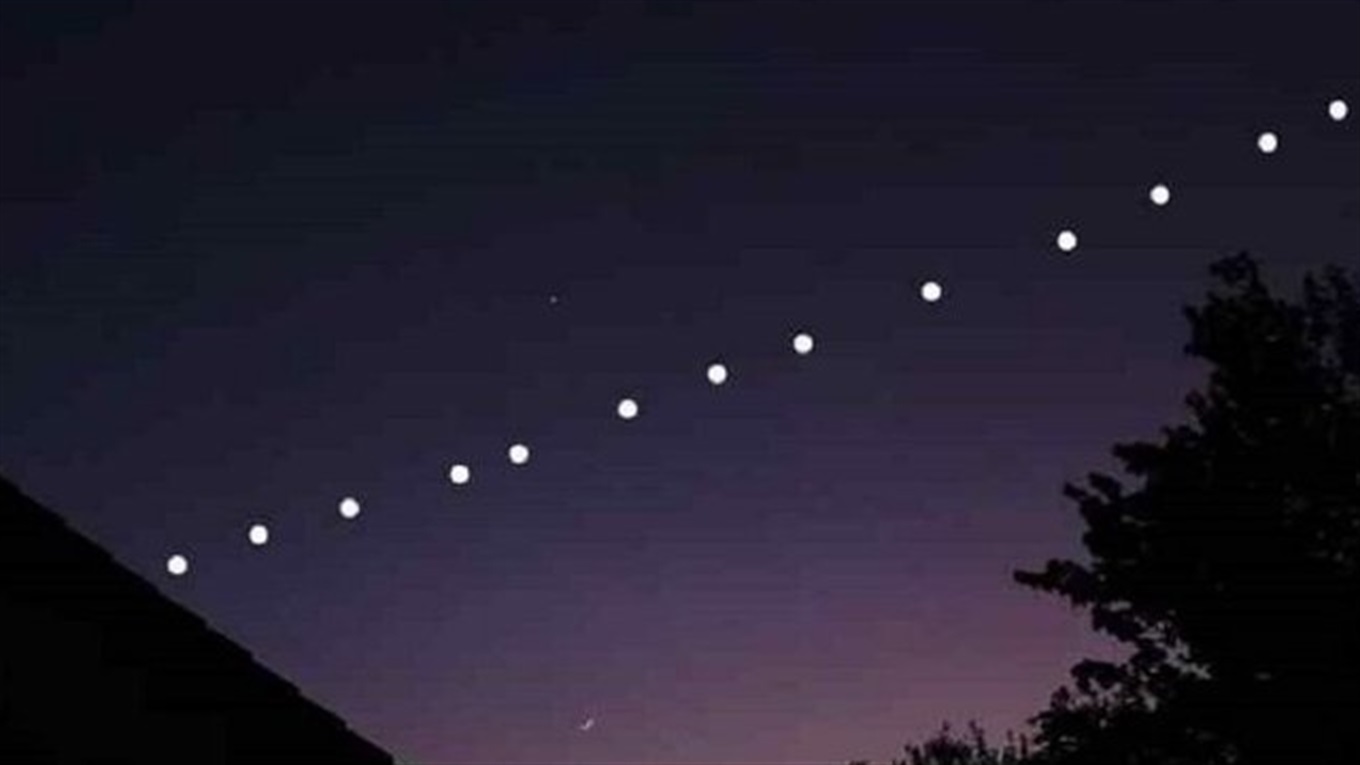 Супутники Starlink виглядають як "поїзд" із яскравих вогнів протягом кількох днів після запуску. У цей час їх добре видно неозброєним оком.