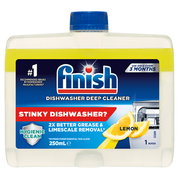 To keep your machine running smoothly, smelling great and cleaning properly, we recommend using a dishwasher cleaner like Finish Dishwasher Cleaner once every 3 months (or as soon as you notice build up or smell bad odours).
