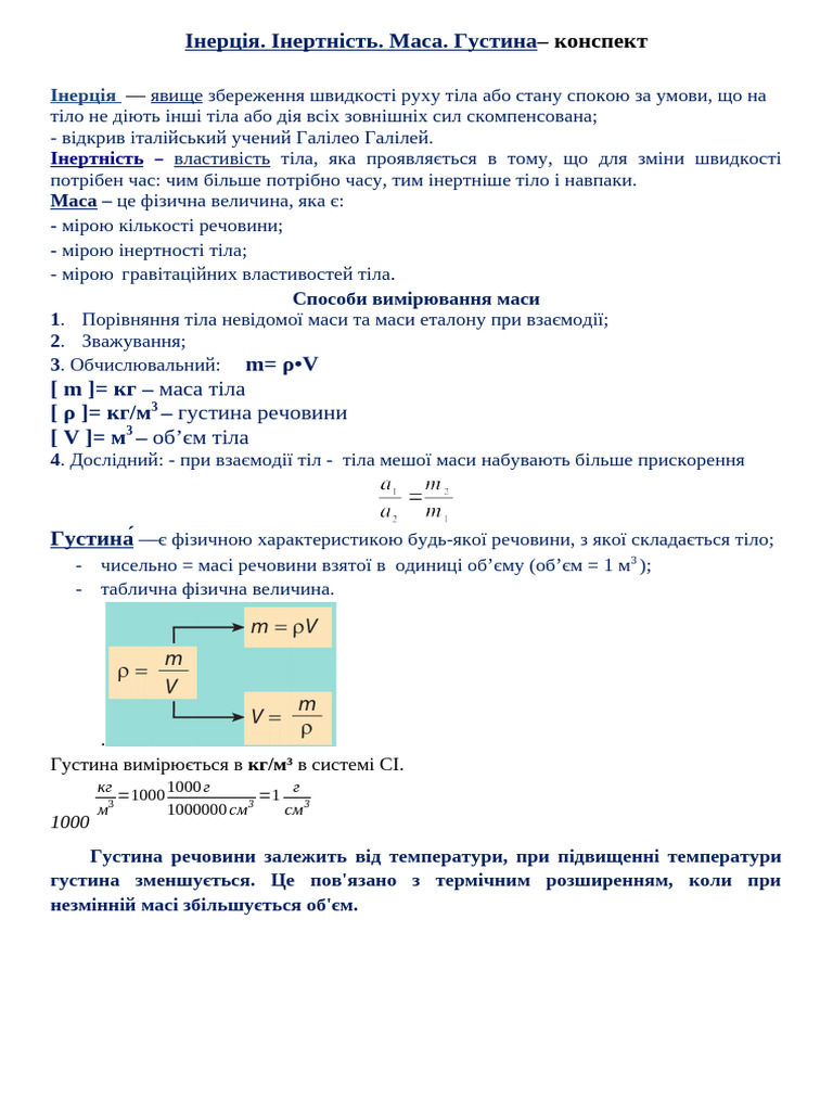 Тобто, тіло більшої маси краще зберігає свою швидкість, воно більш інертне, ніж тіло порівняно меншої маси. Отже, маса тіла може слугувати мірою інертних властивостей тіла, тобто властивості тіла зберігати свою швидкість, коли на нього не діють інші тіла. Маса – міра інертності тіла.