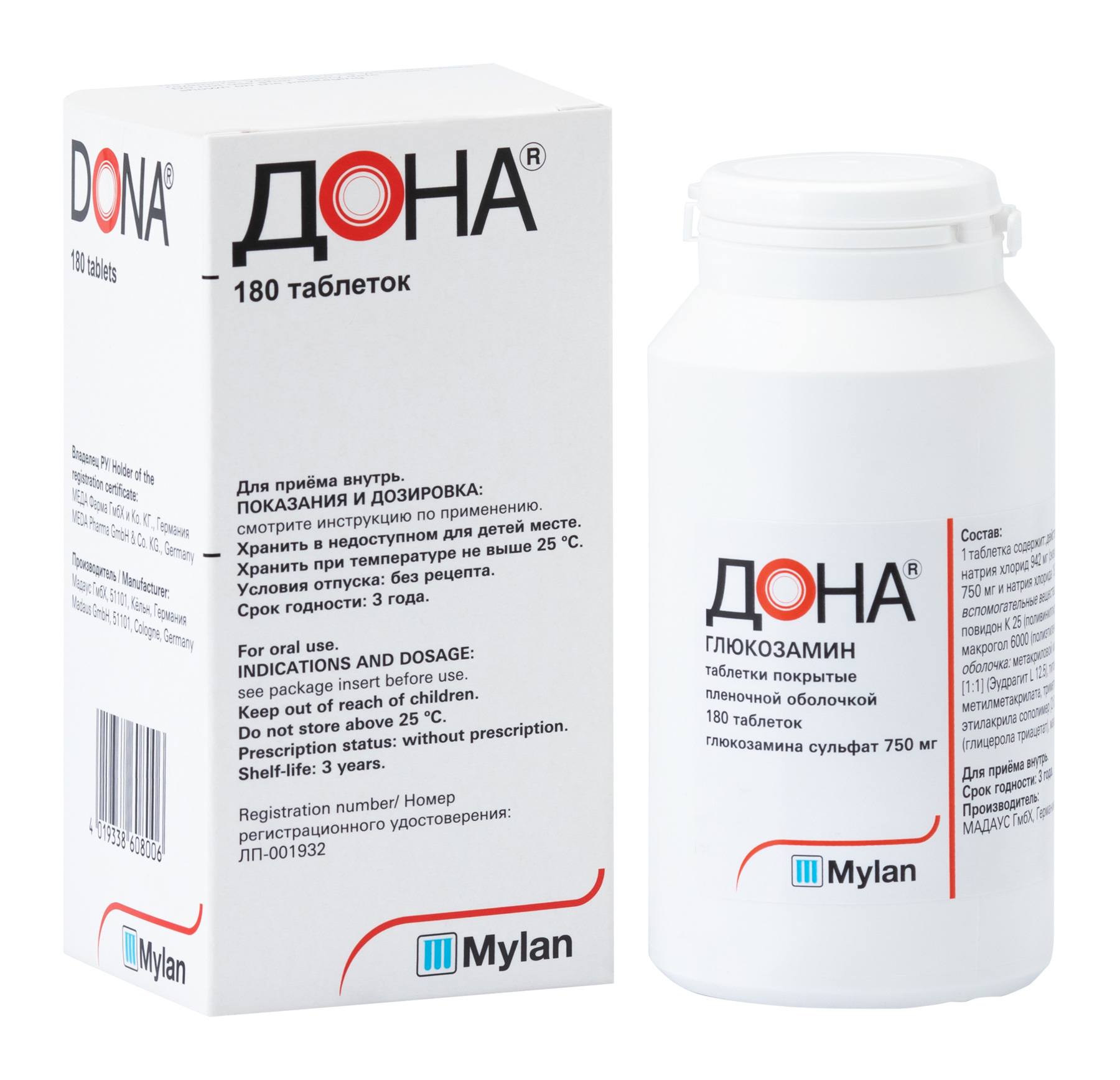 Лекарственный препарат Дона® содержит действующее вещество глюкозамин, который относится к группе препаратов, называемых «стимулятор репарации тканей». Лекарственный препарат Дона® показан к применению у взрослых и детей в возрасте старше 12 при: – Первичном и вторичном остеоартрите; – Остеохондрозе; – Спондилоартрозе.