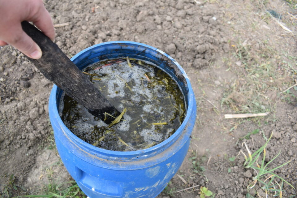 Кропиву подрібнюємо, додаємо у воду і всипаємо золу. настоюємо близько тижня, регулярно помішуючи. Розводимо в пропорції 1 до 10 зі свіжою водою …
