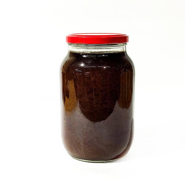 Якщо дивитися його на просвіті, то він дає багряний відтінок. Консистенція пастоподібна, вона густа та тягуча. Довго не кристалізується, залишається в’язким.