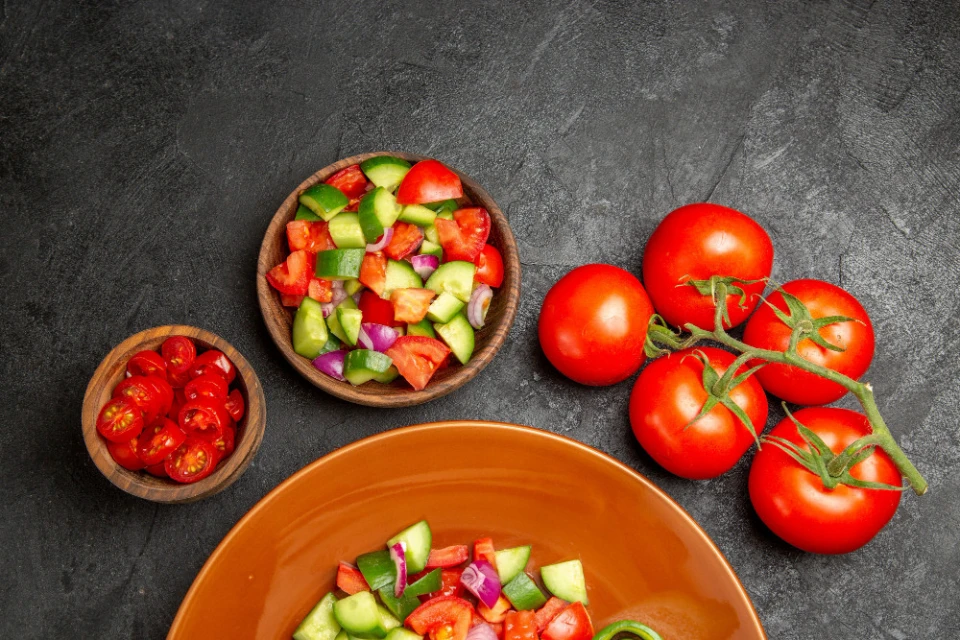 - Швидкий салат з огірком, помідором і синьою цибулею