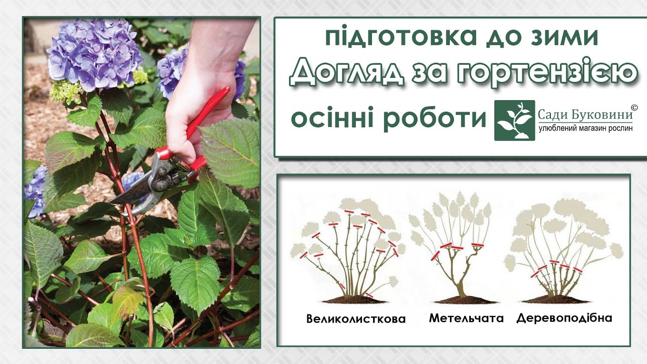 Як обрізати гортензію після цвітіння Осінню обрізку проводьте після закінчення періоду цвітіння гортензії. Вона дозволить рослині підготуватися до зими та зберегти свою силу. Осіння обрізка потрібна для тих гортензій, що цвітуть на пагонах минулого року, таких як крупнолиста гортензія.