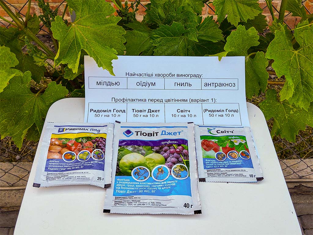 Обробка перед цвітінням одна з двох найголовніших обробок винограду, тому її потрібно провести сильними препаратами.