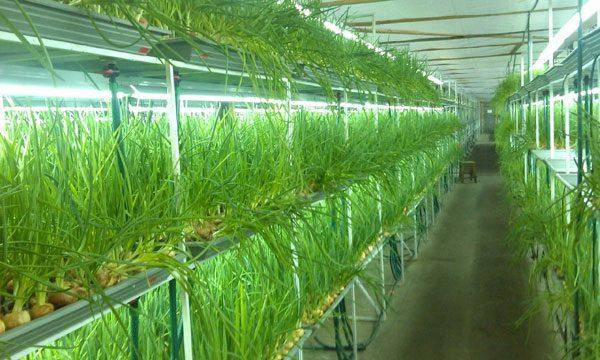Опалювана теплиця Найбільш зручний та ефективний метод вирощування цибулі – на стелажах. При цьому рослини висаджуються на ширину 35 см, що дозволяє рівномірніше прогрівати грунт і раніше пророщувати цибулини. Площа теплиці використовується набагато ефективніше, за рослинами легко доглядати, не нахиляючись.