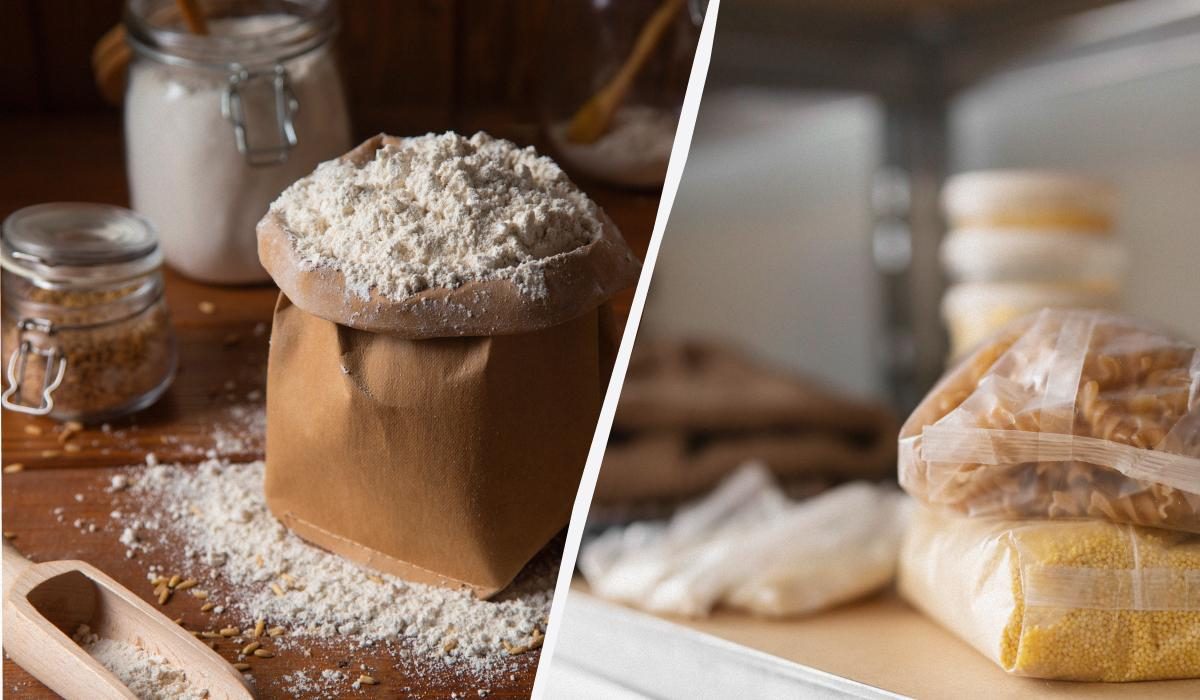 Якщо умови не дозволяють зберігати борошно при оптимальній температурі, найкраще покласти його в холодильник. Однак важливо, щоб борошно не було в паперовому пакеті, аби воно не піддавалося впливу вологи. Тому найкраще пересипати його в банки і щільно закрити кришками.