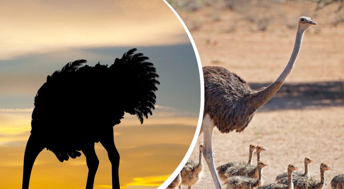 Це міф☝ Вони не ховають голову, а прижимають її до землі і шукають їжу таким способом А коли страуси дійсно відчувають загрозу, то просто …