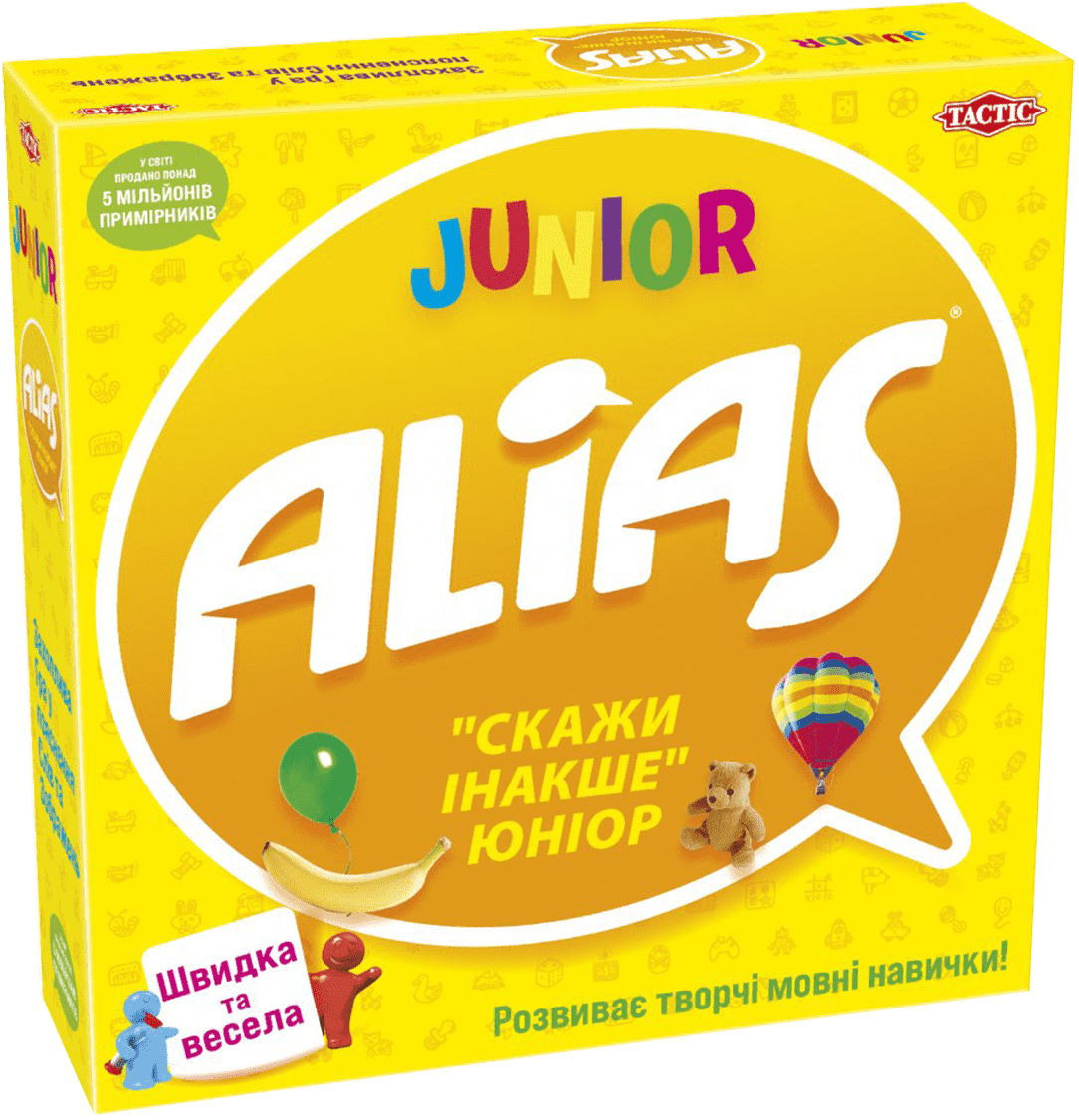“Аліас для дітей” – спеціальна версія гри в слова “Аліас”, призначена для дітей віком від п’яти років. Щоб пояснювати слова, було веселіше, всі картки проілюстровані веселими картинками.