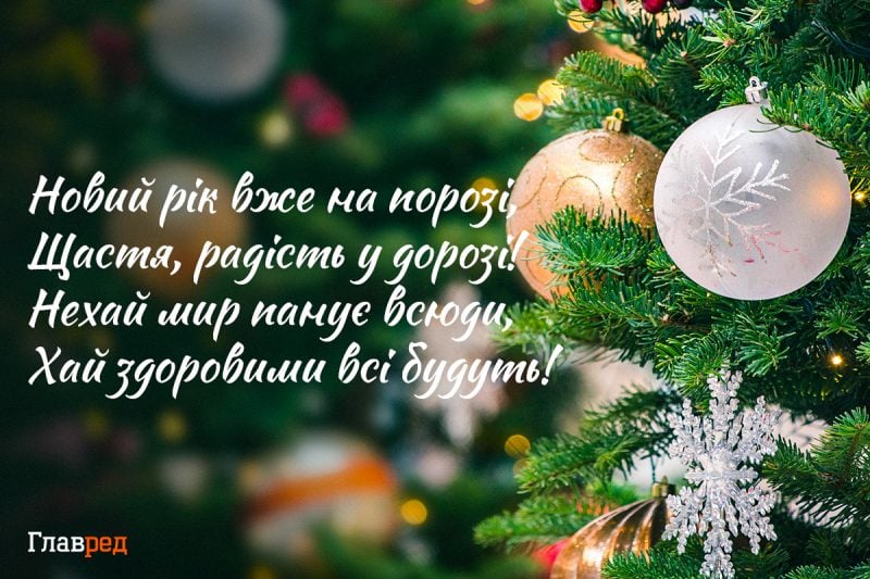 Зі святами! · Нехай Новий рік принесе вам здоров’я, щастя та удачу! · Щасливих свят! · Вітаю з Новим роком, що наближається! · З прийдешнім святом!