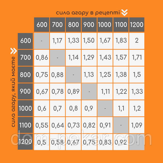 Приблизна витрата агар-агару: від 2 до 4 г (не повної 1 чайної ложки) на 150-180 мл рідини. Агар-агар з желе. Перед тим, як використовувати агар-агар, варто пам …