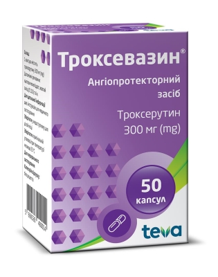 Троксевазин, капсули, застосовувати для симптоматичного лікування таких захворювань: · передварикозний і варикозний синдром, варикозні виразки; · поверхневий …