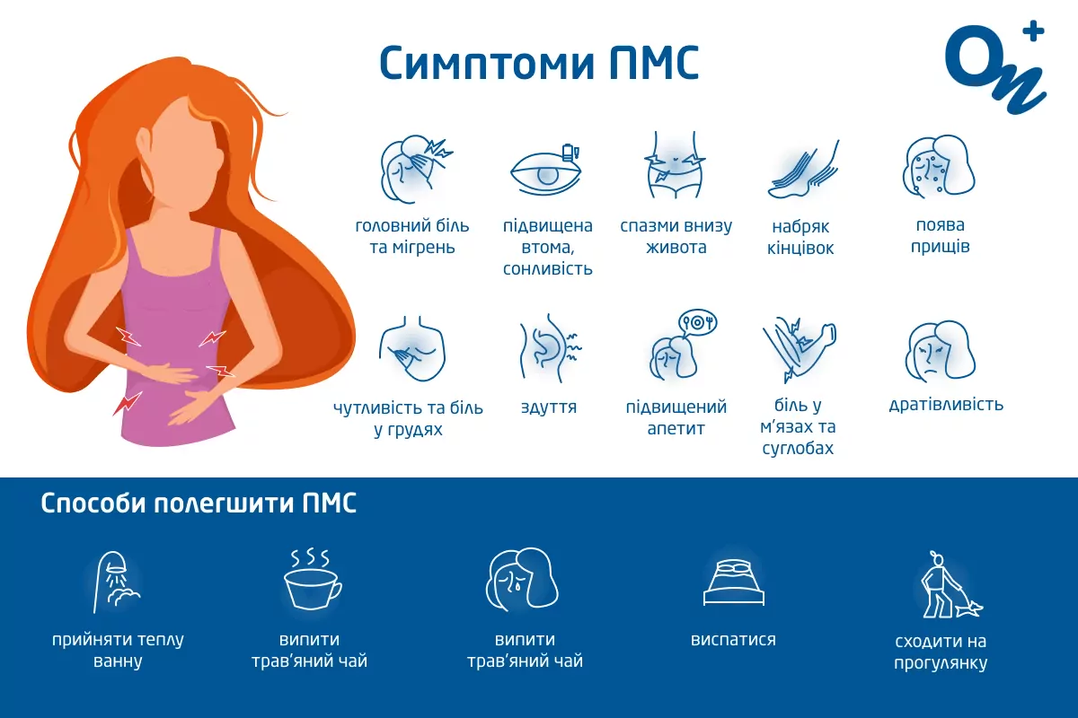 Передменструальний синдром (ПМС) – це сукупність фізичних та емоційних симптомів, що відбуваються за 2–7 днів перед місячними та зазвичай закінчуються з їхнім настанням або протягом декількох днів після.