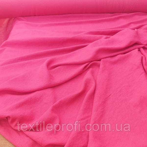 Легка тканина з вкладенням віскози та “ефектом пом’ятості” яскраво-рожевого кольору ; Вид натуральної тканини. Рослинного походження ; Тканина. Віскоза ; Склад.