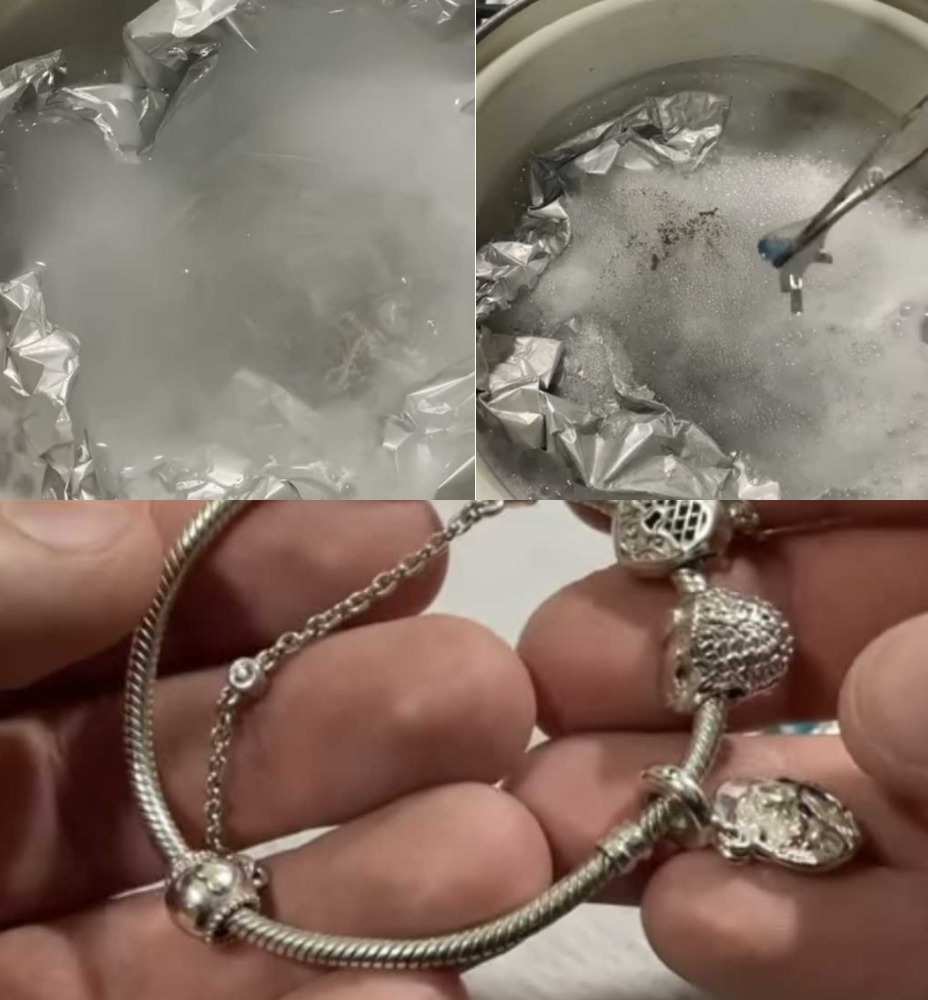Застеліть дно ємності фольгою. · Покладіть на фольгу ваші срібні прикраси. · Посипте прикраси харчовою содою. · Залийте все гарячою водою, але не …