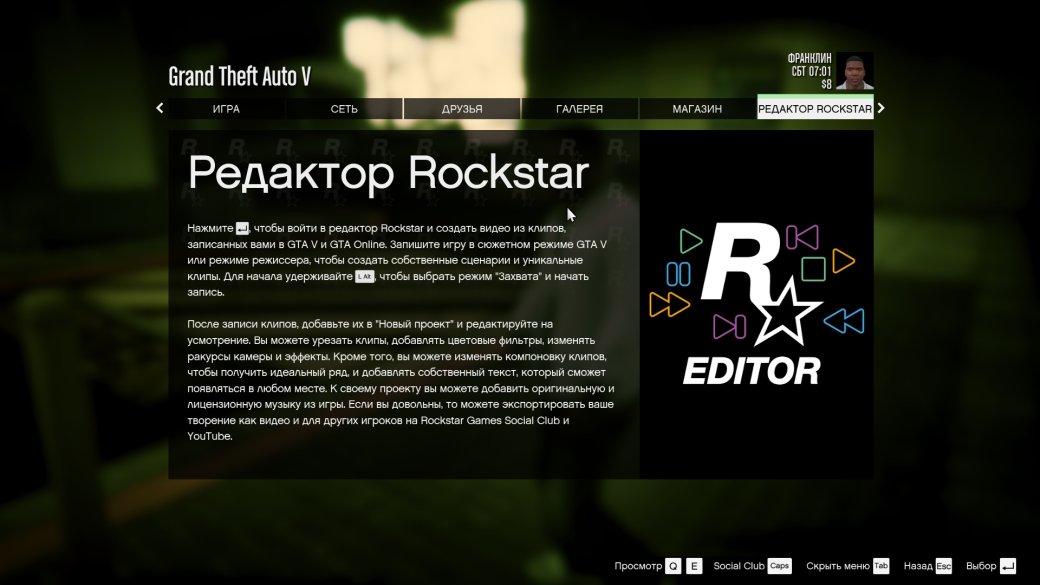 Найпростіший спосіб увійти в режим режисера – це скористатися меню редактора Rockstar (Rockstar Editor), куди можна потрапити через звичайне меню гри (меню …