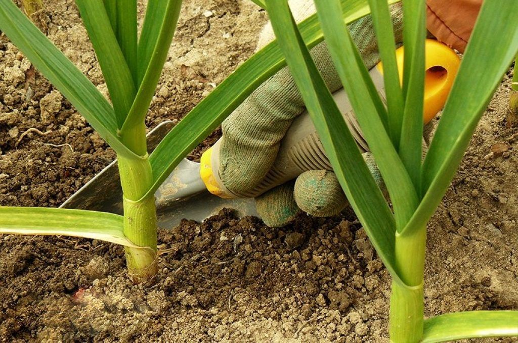 Вносити сечовину під часник потрібно в розчиненому у воді вигляді і додавати в розчин хлористий калій — 10 г сечовини, 10 г хлористого калію на відро води, це норма на квадратний метр часникової грядки.