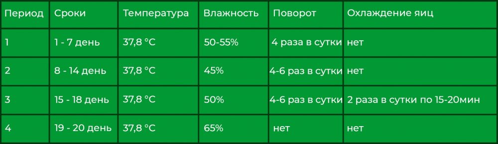 Таблиця інкубації курячих яєць: