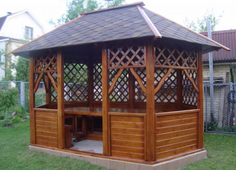 Якщо говорити про деревину, то найкращими варіантами для спорудження красивої, комфортної та надійної альтанки є модрина, ялина, ялиця та сосна.
