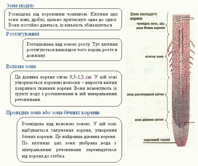 Зона всмоктування (зона кореневих волосків) Основна функція – всмоктування води та розчинених у ній речовин. PDF