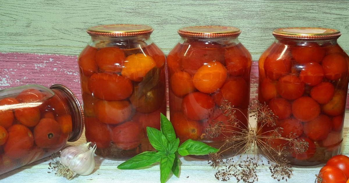 Помідори краще брати тверденькі, бажано сорту сливка, але не обов'язково. Розсіл на трьохлітрову банку: 1,5 л холодної води 105 г солі 1 ст л цукру 1. Помідори та листя добре помити, скласти на дно банки листя, часник, помідори, знову часник, листя.