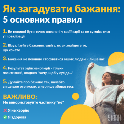 Як правильно загадувати бажання: 5 основних правил · ✓Особиста залученість і конкретика. Загадане має стосуватися саме тебе. · ✓Використання …